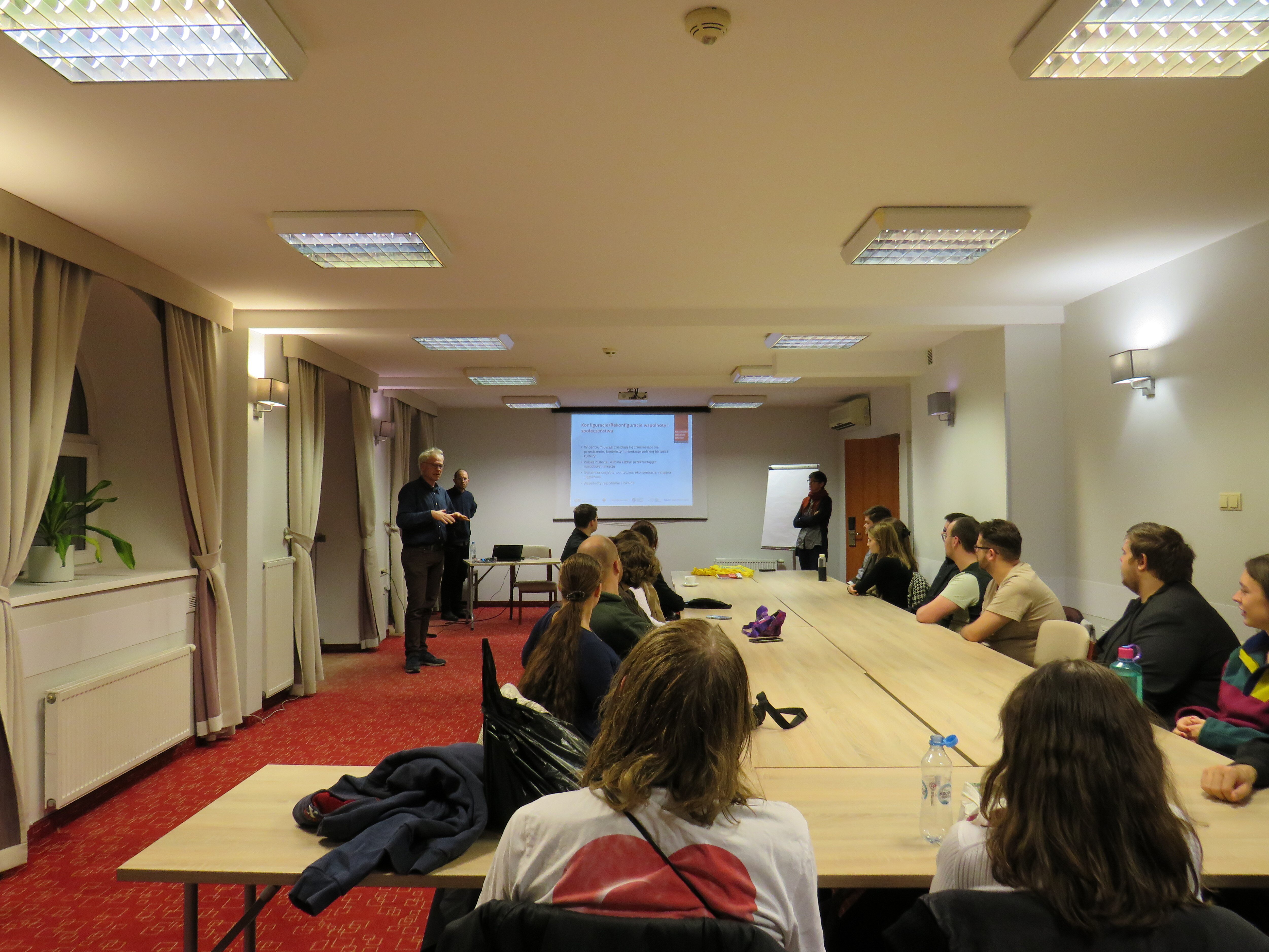 Eine kalte, aber umso fröhlichere Novemberwoche verbrachten wir – 13 Studierende und vier Dozierende aus Halle und Jena – mit dem Aleksander-Brückner-Zentrum für Polenstudien in Stettin. Unter dem Motto „Blick von Osten, Blick von Westen“ beschäftigten wir uns im Rahmen des Masterstudiengangs Interdisziplinäre Polenstudien in vier Seminargruppen aus den Blickwinkeln verschiedener Wissenschaften mit der Vielfalt der pommerschen Hafenstadt: Der Block Literaturwissenschaft untersuchte das dokumentarische Schreiben als Forschung an der eigenen Geschichte am Beispiel von Brygida Helbigs Roman Kleine Himmel, welcher in Teilen zu Teilen in Stettin spielt. Die Gruppe Geschichtswissenschaft recherchierte die Vergangenheit der Stadt als polnisches Westgebiet nach 1945 und führte die Gruppe durch die Ausstellung des Centrum Dialogu Przełomy. Die sprachwissenschaftliche Gruppe richtete ihren Fokus auf die Mehrsprachigkeit in der deutsch-polnischen Grenzregion und der Block Politikwissenschaft beleuchtete unter Anleitung von Pierre-Frédéric Weber von der Universität Stettin die politische Lage der europäisch geprägten Stadt.
