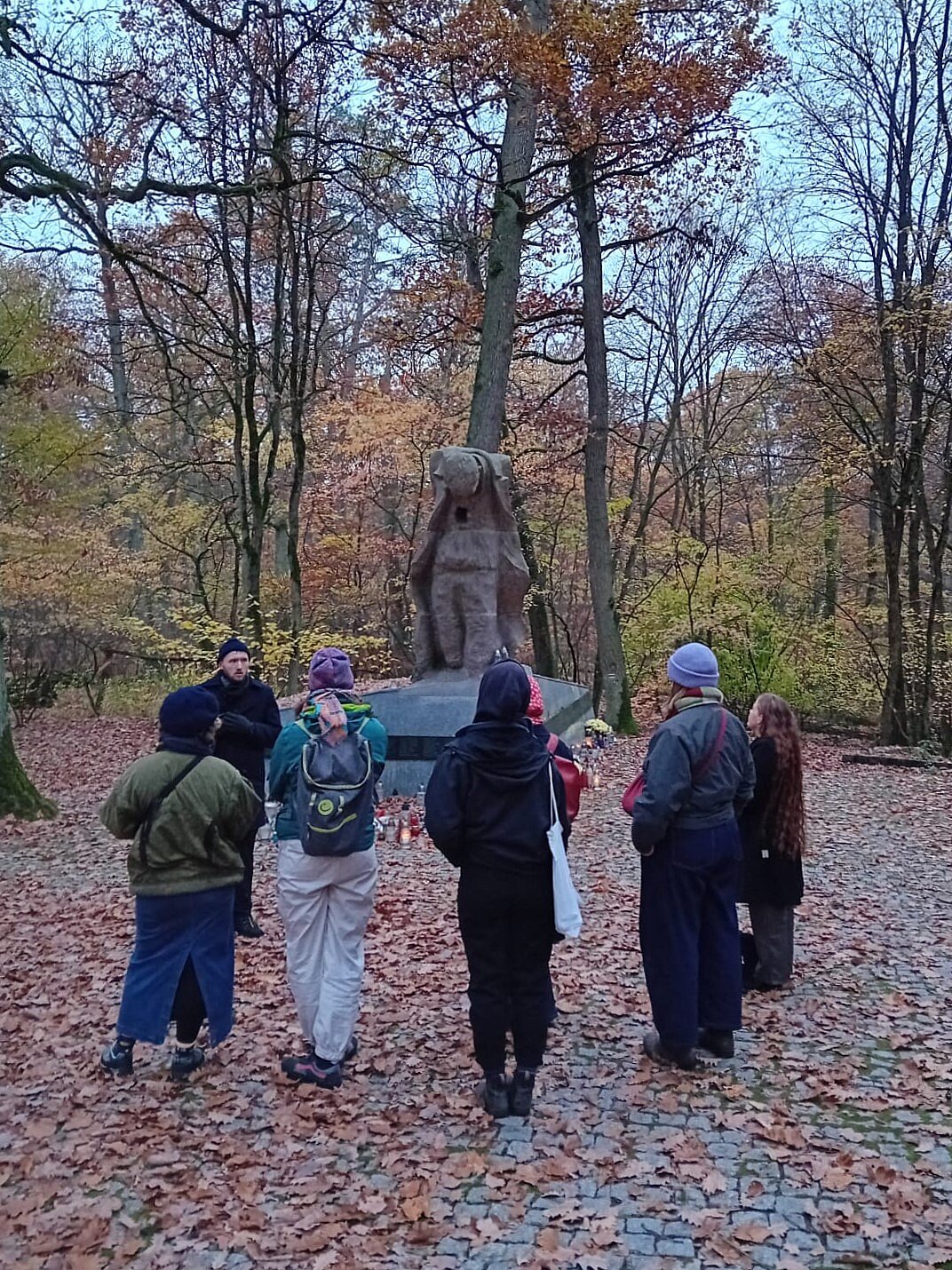 Den freien Teil des Sonntags nutzten einige Studierende auch dafür, mit Andrei Lysou, Geschichtsstudent in Thorn, den Gedenkort Barbarka zu besuchen. Dieser Punkt im Programm erwuchs spontan beim Austausch der Studierenden aus Deutschland mit den polnischen Kommilitoninnen und Kommilitonen im Rahmen des Kooperationstreffens. Der Gedenkort für die Hinrichtung der polnischen Opfer durch das NS- Regime im Jahr 1939 ist eine Gedenkstätte beim Örtchen Barbarka im Wald nördlich Thorns, die wir trotz eines kleinen Irrmarsches durch den Wald gut erreichten.